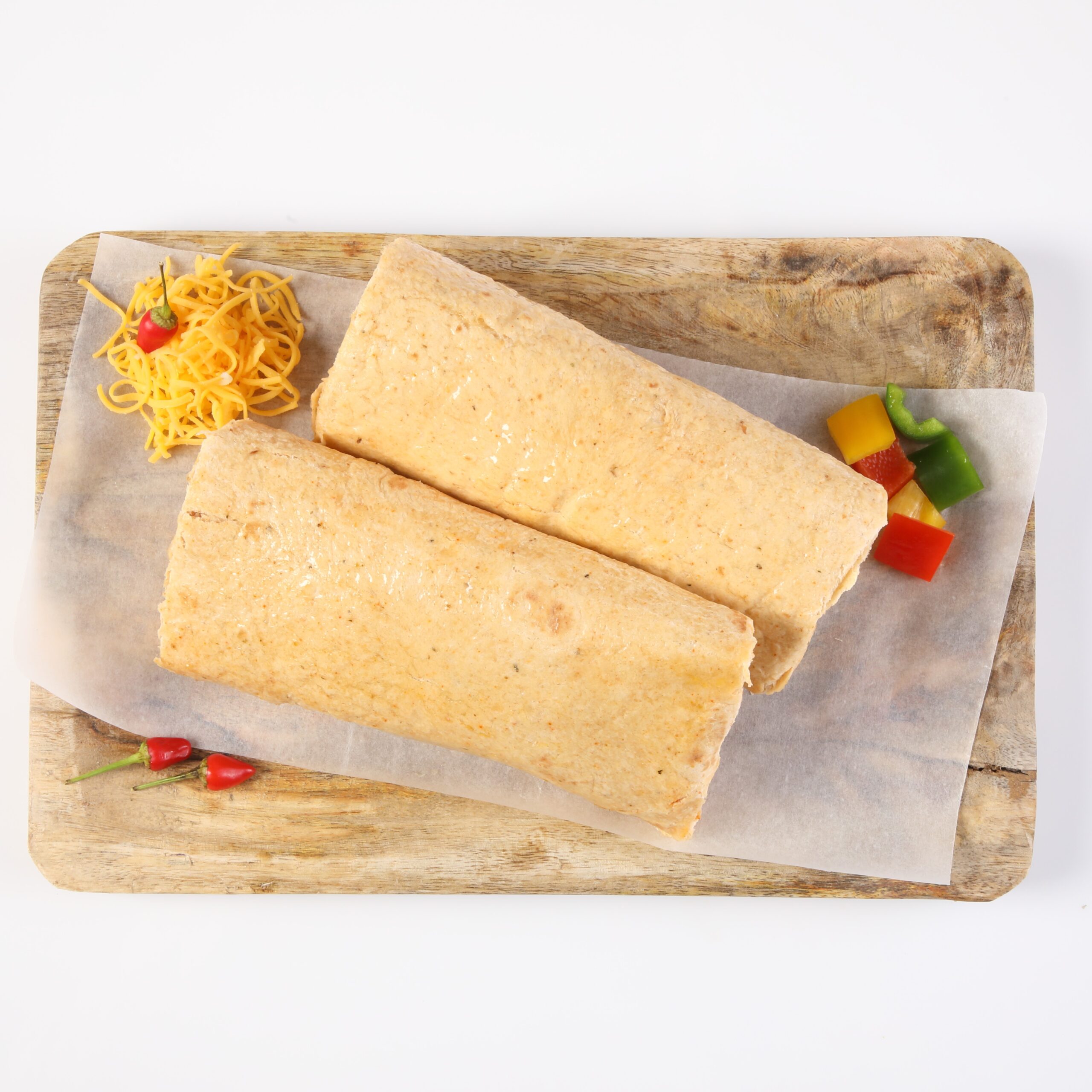 Συστατικά: Παρασκεύασμα από μπιφτέκι κοτόπουλου (σύγκοπτο κρέας κοτόπουλο α/ο 51,4 %, λίπος χοιρινό 23,7%, νερό, φρυγανιά (αλεύρι ΣΙΤΟΥ, νερό, αλάτι, μαγιά), αλάτι, κρεμμύδι αφυδ/νο, πράσινη & κόκκινη πιπεριά αφυδ/νη, μπαχαρικά, εκχ. μαγιάς, εκχ. μπαχαρικών, σκόρδο αφυδ/νο, φυτικές ίνες ΣΙΤΟΥ, ελαιόλαδο), τορτίγια spicy (αλεύρι ΣΙΤΟΥ, αλάτι) cheddar cream (νερό, αραβοσιτέλαιο, ΤΥΡΙ cheddar (ΓΑΛΑ), κρέμα ΓΑΛΑΚΤΟΣ, ζάχαρη, ορός ΓΑΛΑΚΤΟΣ, αλάτι, μέσο οξίνισης: γαλακτικό οξύ, εκχ. μαγιάς, ενισχυτικό γεύσης: γλουταμινικό νάτριο, κρεμμύδι, μπαχαρικά, αρωμ. ύλη, εκχ.μπαχαρικών, χρωστική: εκχ. πάπρικας), πιπεριές, φυτικά έλαια (σογιέλαιο, κραμβέλαιο, πλ. υδρογονωμένο κραμβέλαιο, αλάτι, μπαχαρικά, τομάτα σε σκόνη, σάλτσα ΣΟΓΙΑΣ (περ. ΣΙΤΑΡΙ), ζάχαρη, πράσινη πιπεριά αφυδατωμένη, σκόρδο αφυδατωμένο, βότανα, εκχ. μπαχαρικών, αρωμ. ύλη