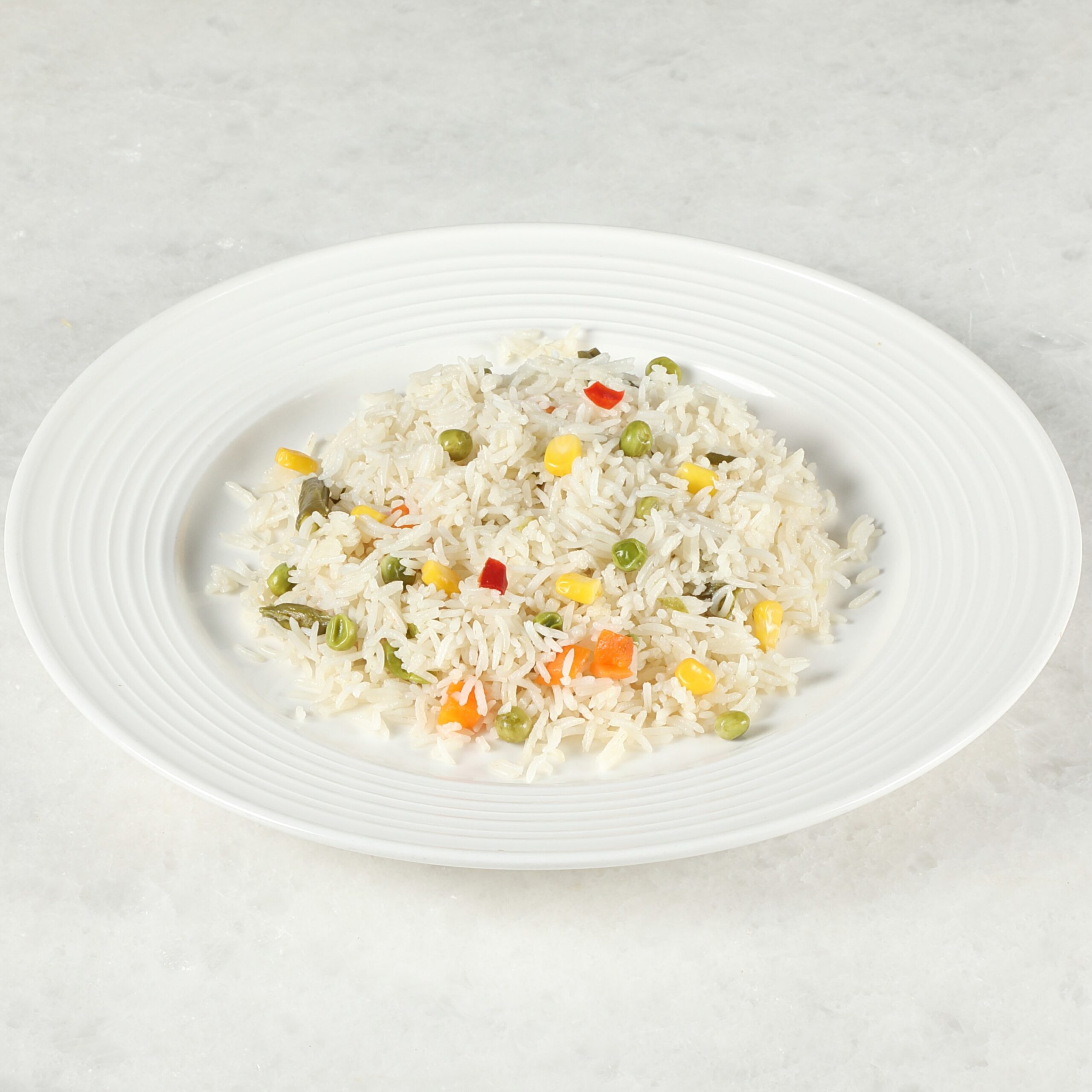 Συστατικά: Ρύζι basmati, ζωμός χοιρινού (περιεχ. ΓΛΟΥΤΕΝΗ), mix κατεψυγμένων λαχανικών (καρότα-φασολάκια-αρακάς-πιπεριά)