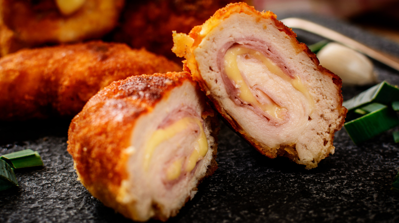 Τραγανό cordon bleu γεμιστό με λιωμένο τυρί και ζαμπόν. Απολαυστικό πιάτο για εντυπωσιακά καθημερινά ή γιορτινά γεύματα.