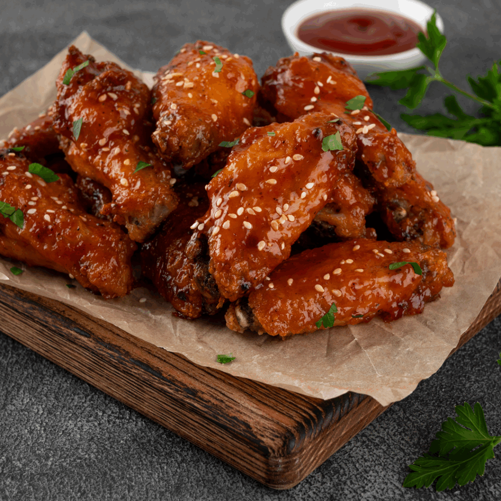 Τραγανές φτερούγες κοτόπουλου με γλυκόξινη σάλτσα τσίλι και μέλι. Ιδανικό πιάτο για BBQ, πάρτι ή απολαυστικό καθημερινό γεύμα.