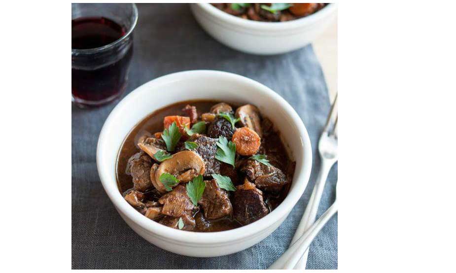 Τρυφερό κρασάτο μοσχαράκι σιγομαγειρεμένο με αρωματικά και κόκκινο κρασί. Ιδανικό πιάτο για πλούσια, ζεστά οικογενειακά γεύματα.