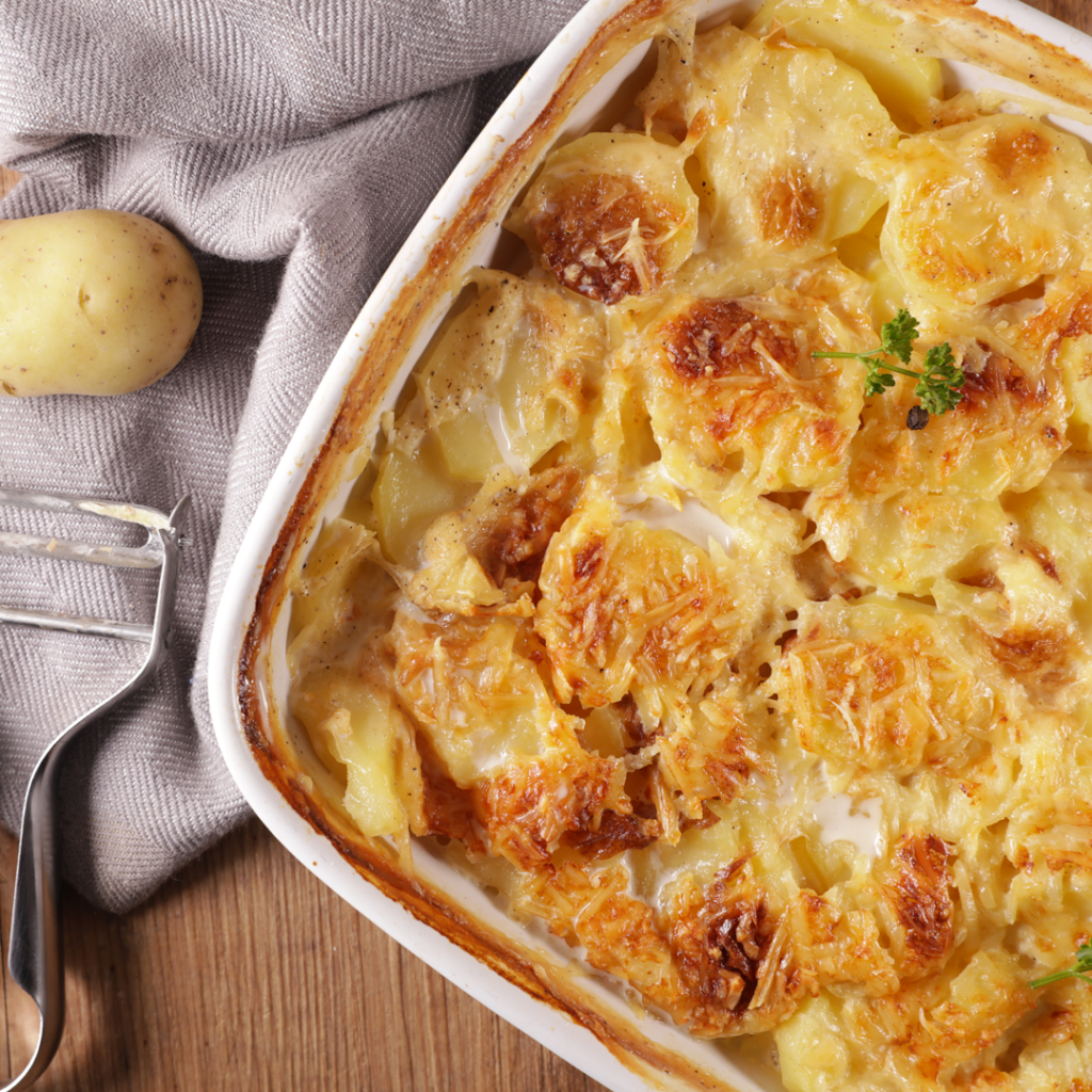 Κρεμώδεις πατάτες ογκρατέν με κοτόπουλο και πλούσια σάλτσα τυριών. Ιδανικό πιάτο για γιορτινό τραπέζι ή απολαυστικό καθημερινό γεύμα.